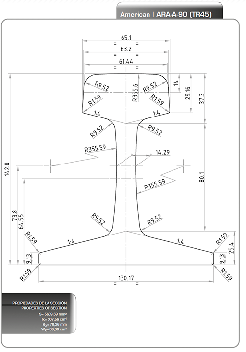 | ASCE85 | 85 | 42,16 | 131,76 | 5 3/16 | 131,76 | 5 3/16 | 65,09 | 2 9,16 | 14,29 | 9/16 | |