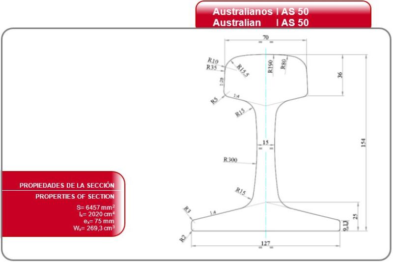 AULASA offers a wide production of light rails from 7 to 50 kg/m according to the standards: DIN 5901; EN 13674-4; DIN 536; AFNOR, British Standard, UIC 860, AS 1085-1.